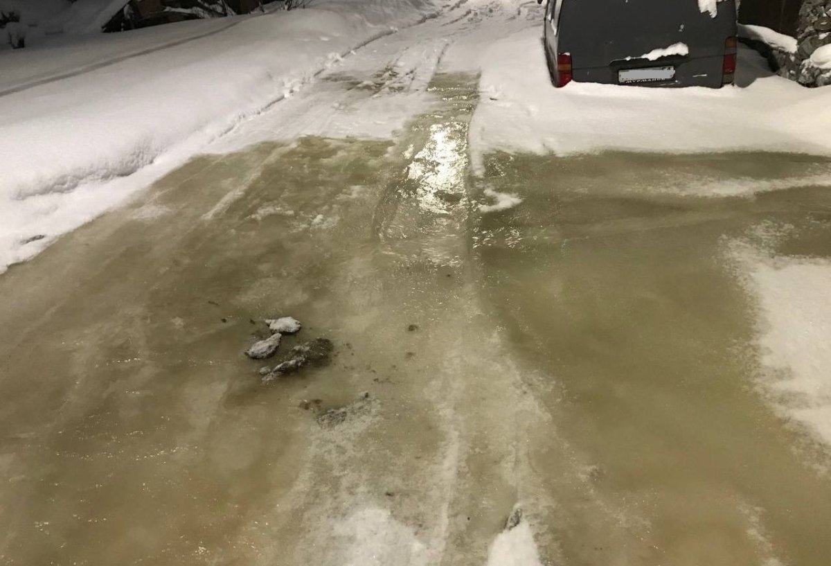 Местные жители отмечают, что лёд здесь может спровоцировать ДТП, а грязные стоки загрязняют почву.
