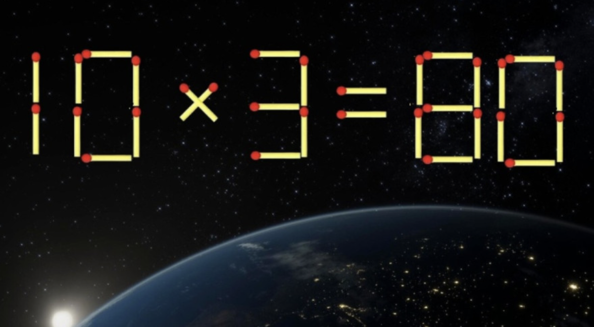 Перед вами простая спичечная загадка. На картинке видно равенство «10×3=80», в котором есть ошибка. Нужно исправить его, переставив всего одну спичку, чтобы равенство стало верным.