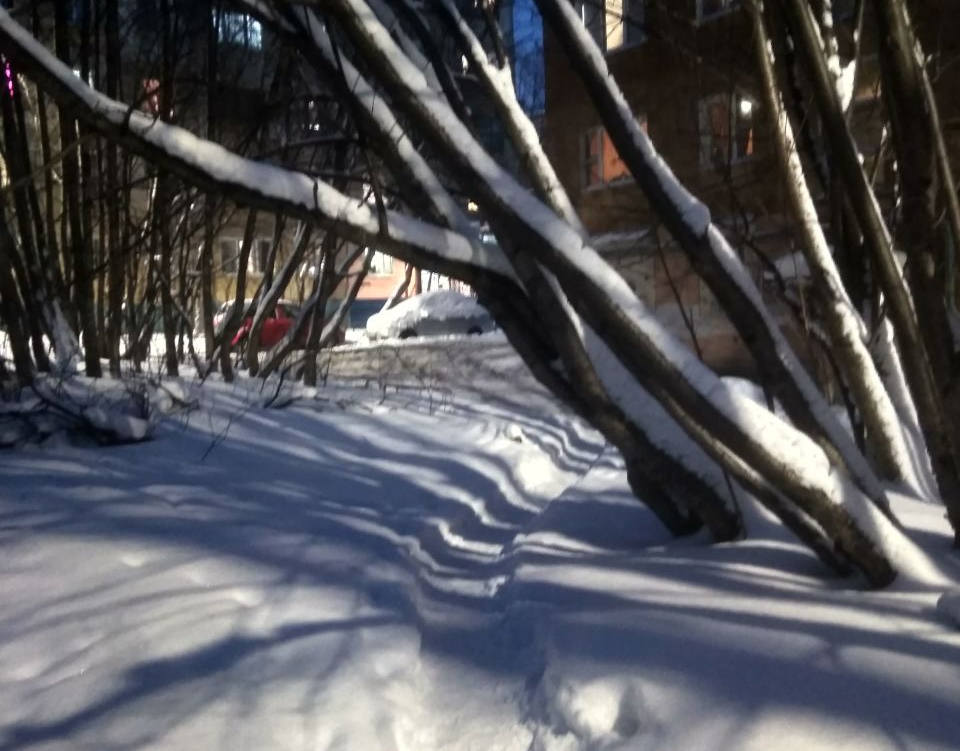 В Мурманске жители двора по улице Тарана, 14-18 обратили внимание на рябины, которые опасно склонились над тропкой, где много прохожих.