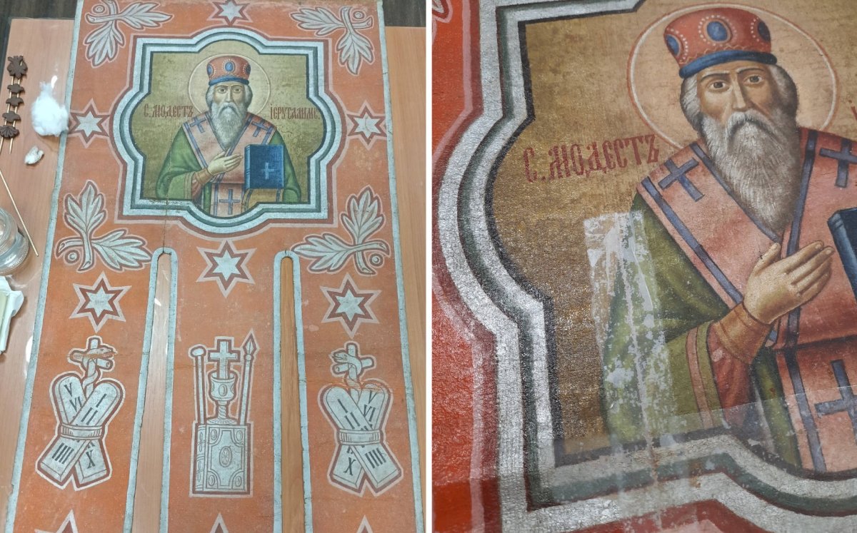 У хоругвей интересная история — они долгие годы лежали за сараем в одной из российских деревень, на них попадал снег и дождь. А потом они оказались в нужных руках.