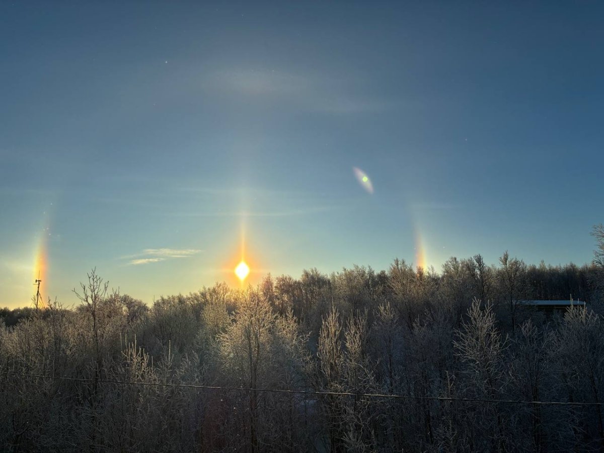 В Мурманской области в небе снова появились «три солнца» — редкое оптическое явление вызвали сильные морозы