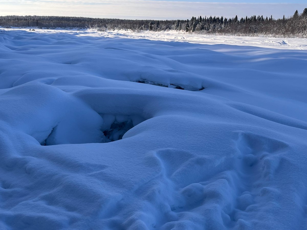 Защита от большой воды: в Варзуге на опасных участках реки начали делать лунки и чернить лед