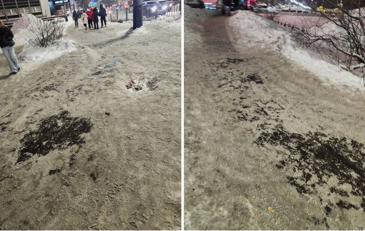 Северяне пожаловались на тротуары по пр. Ленина от угла «Детского мира» до торгового центра «Мурманск Молл». По их словам, пешеходная зона практически превратилась в каток, который присыпан снегом. Об этом местные жители сообщили в чате мэра областного центра Ивана Лебедева.