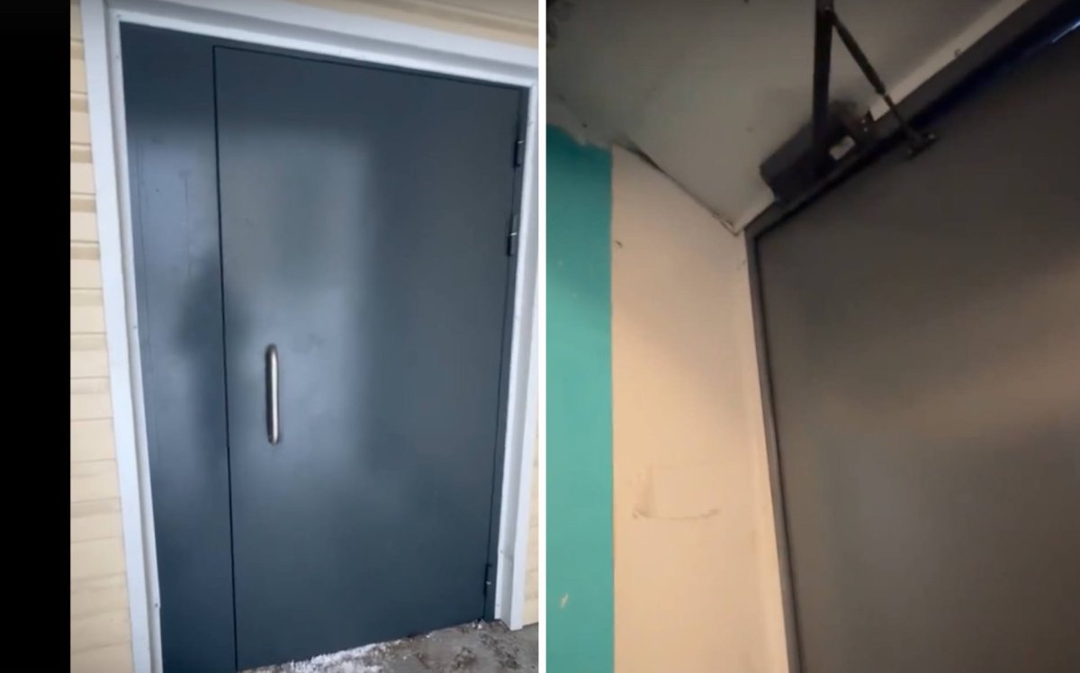 Она опубликовала видео, где засняла, как работает дверь. На кадрах видно и слышно, что новые двери в подъезд скрипят и закрываются с грохотом.