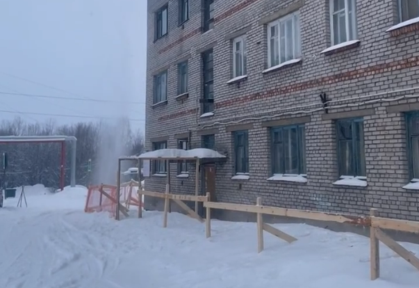 Жителей гарнизона под Мончегорском пугает ремонт крыши: с высоты летят доски, защитные козырьки засыпаны снегом