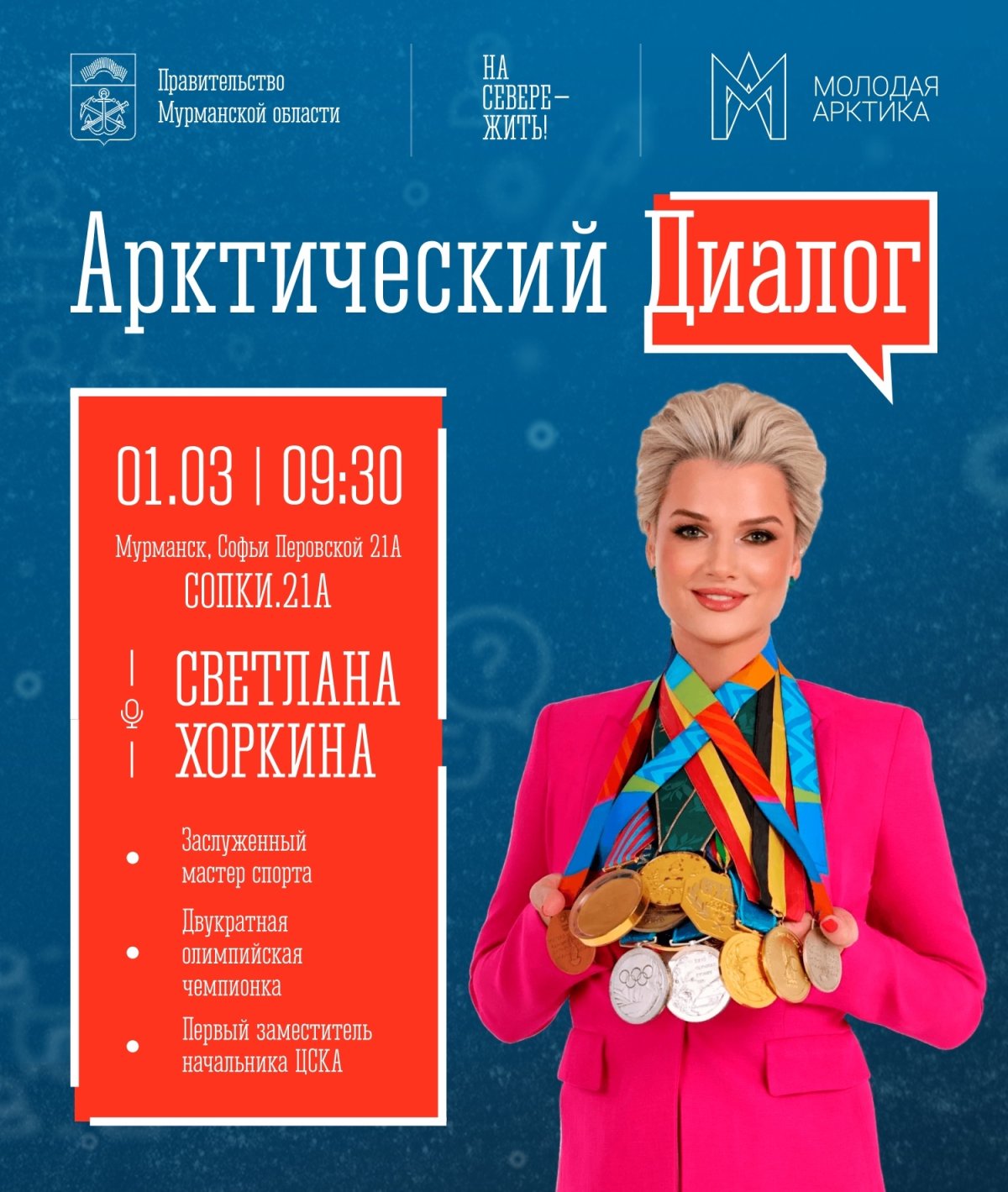 Встреча мурманчан и олимпийской чемпионки, Заслуженного мастера спорта Светланы Хоркиной начнётся в 9:30 утра 1 марта. В рамках проекта «Арктический диалог» известная спортсменка поделится в живой беседе своими секретами активности и успеха.