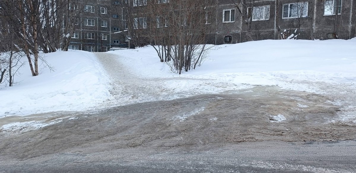«Ноги сломать можно»: Проезд к мурманской школе на Крупской превратился в ледяную ловушку