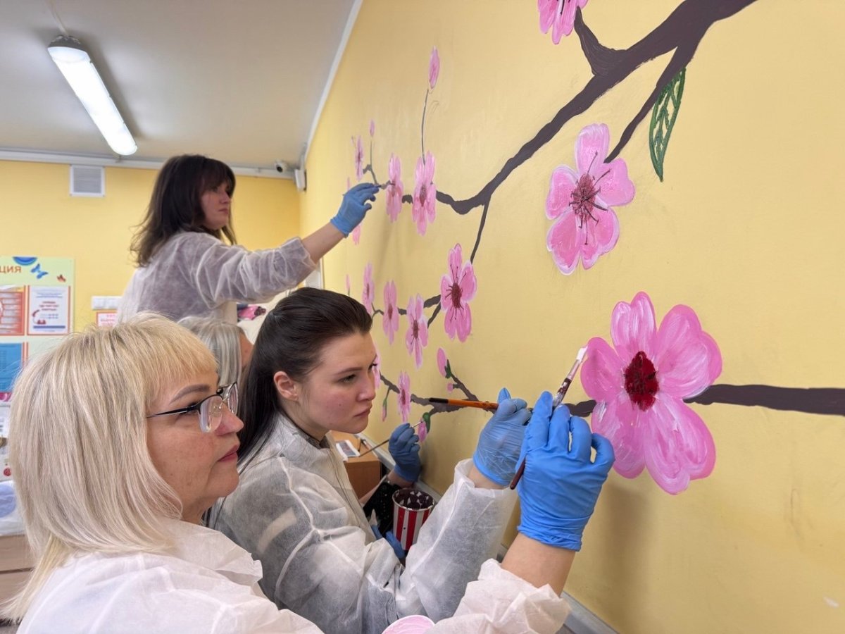 Цветущая сакура в Мурманске: волонтёры превратили столовую для девочек в сказочный сад