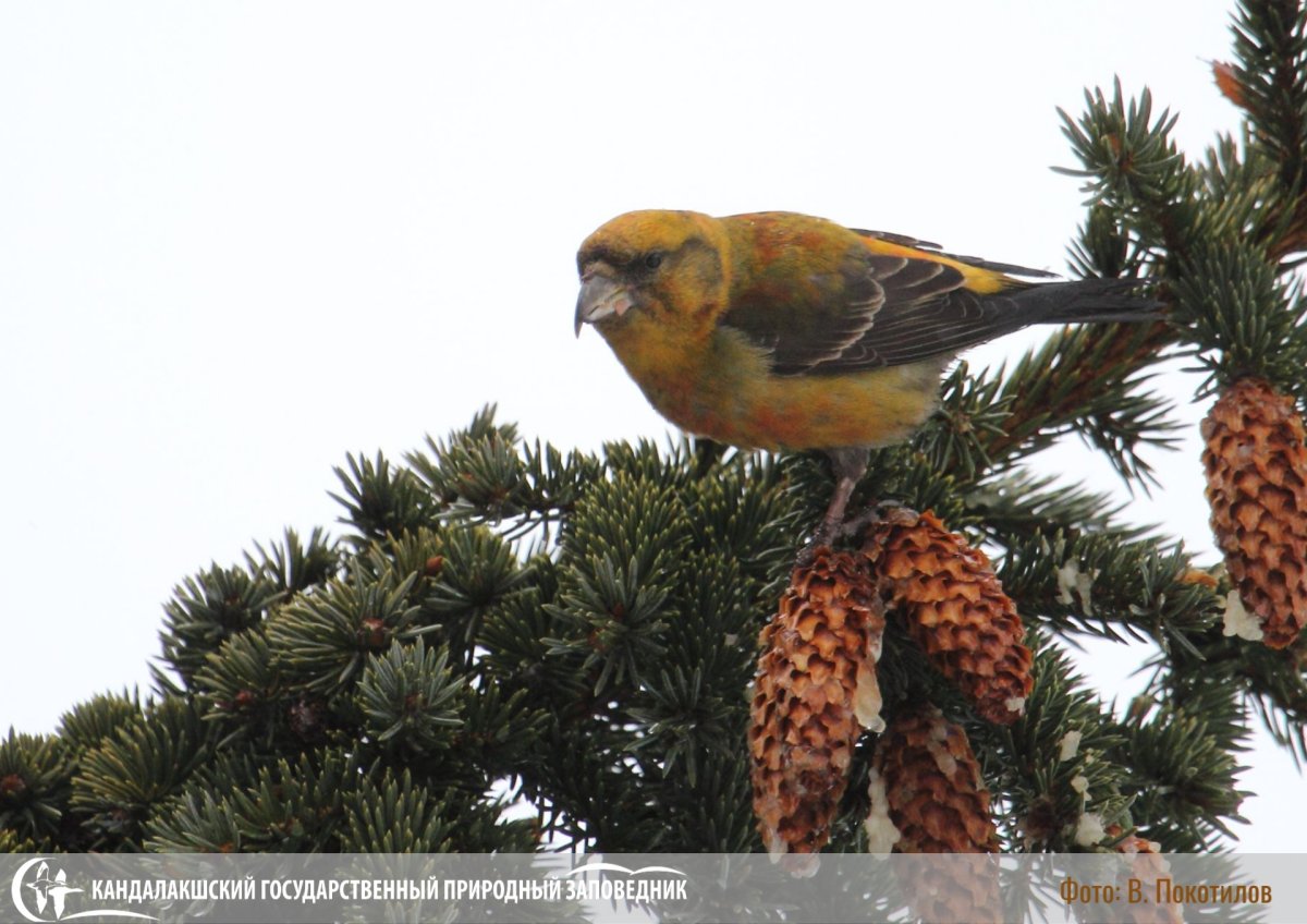 В Кандалакшском заповеднике сообщили о прилёте клёста обыкновенного, один из пернатых попал в кадр объектива фотографа. Несмотря на средний по объёму урожай шишек ели и сосны в этом году, птицы все же прилетают для гнездования в марте.