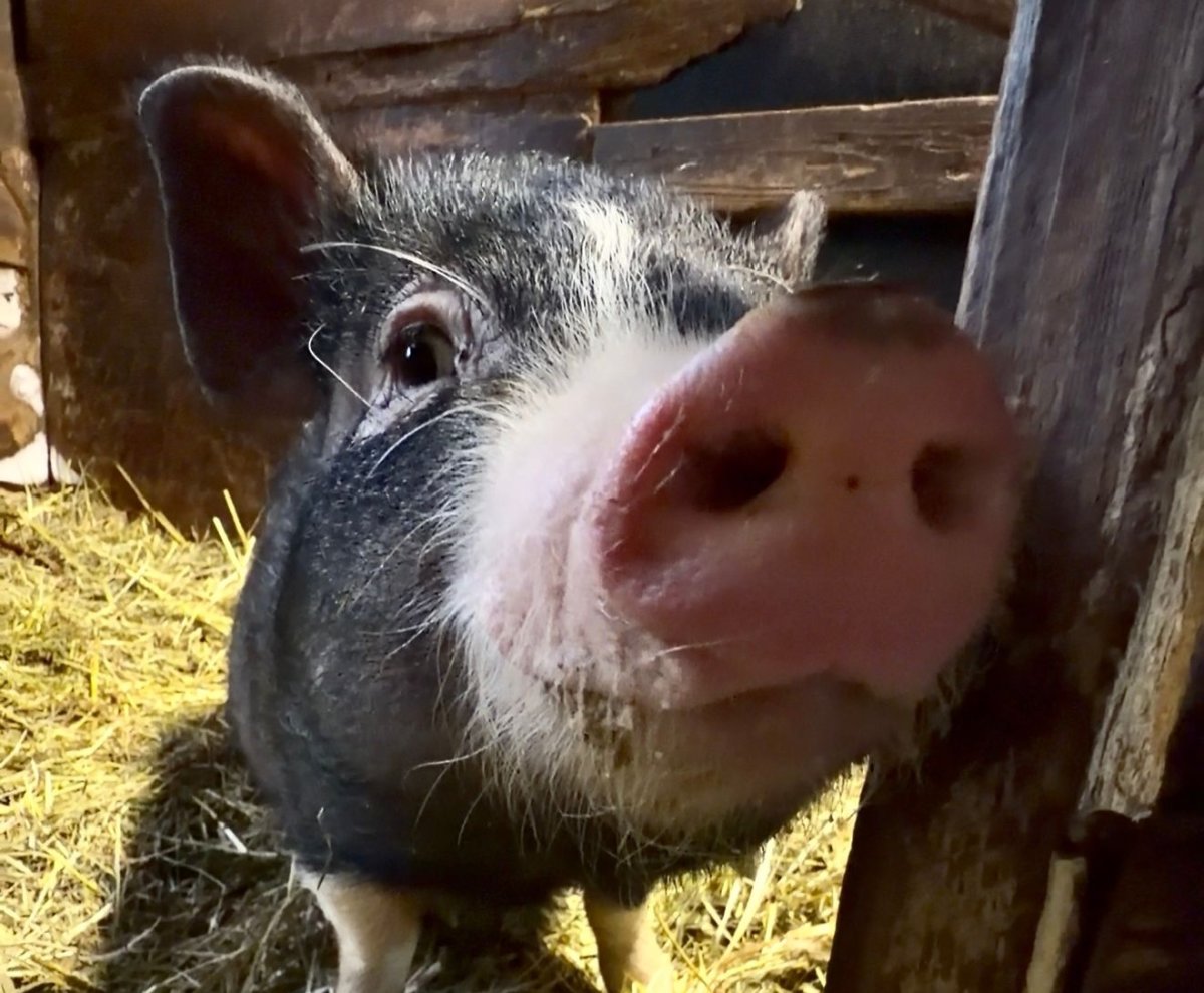 В Апатитах мини-пиг Эмми уже не малышка: спасенная на трассе свинка заметно располнела