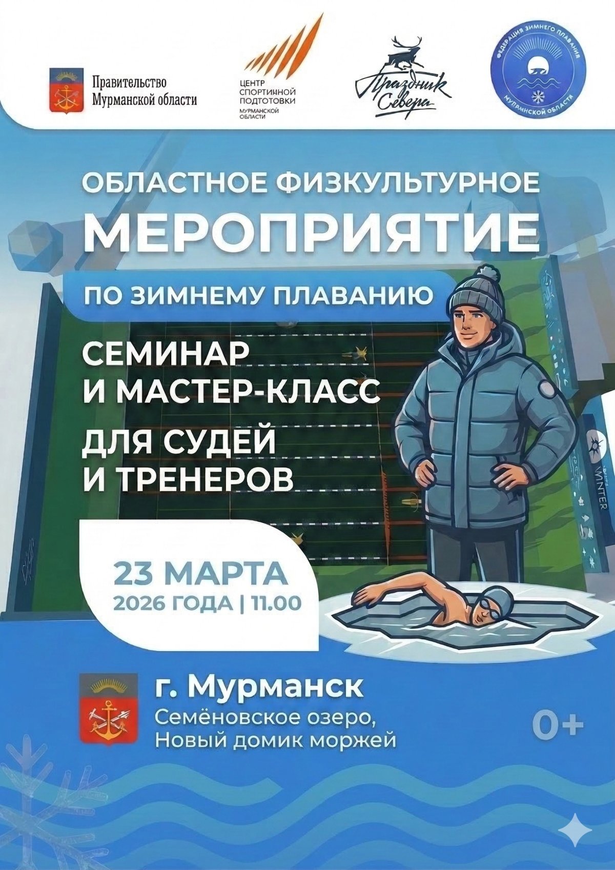 Пловцов в Мурманске ожидает новое спортивное событие. 23 марта состоится областное физкультурное мероприятие, посвящённое зимнему плаванию — виду спорта, который с каждым годом набирает всё большую популярность, особенно в северных регионах России. Спортсмены соберутся возле нового домика моржей на Семеновском озере, теоретическая часть будет проходить в Духовно-реабилитационном центре возле храма Спас-на-Водах.