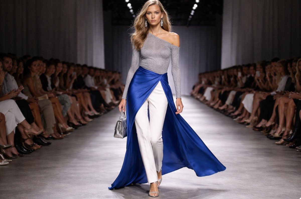 Один из самых обсуждаемых трендов сейчас — юбки и платья поверх брюк. Для многих он до сих пор выглядит странно и даже вызывает шок, но при грамотной подаче такие образы могут быть очень стильными и современными.