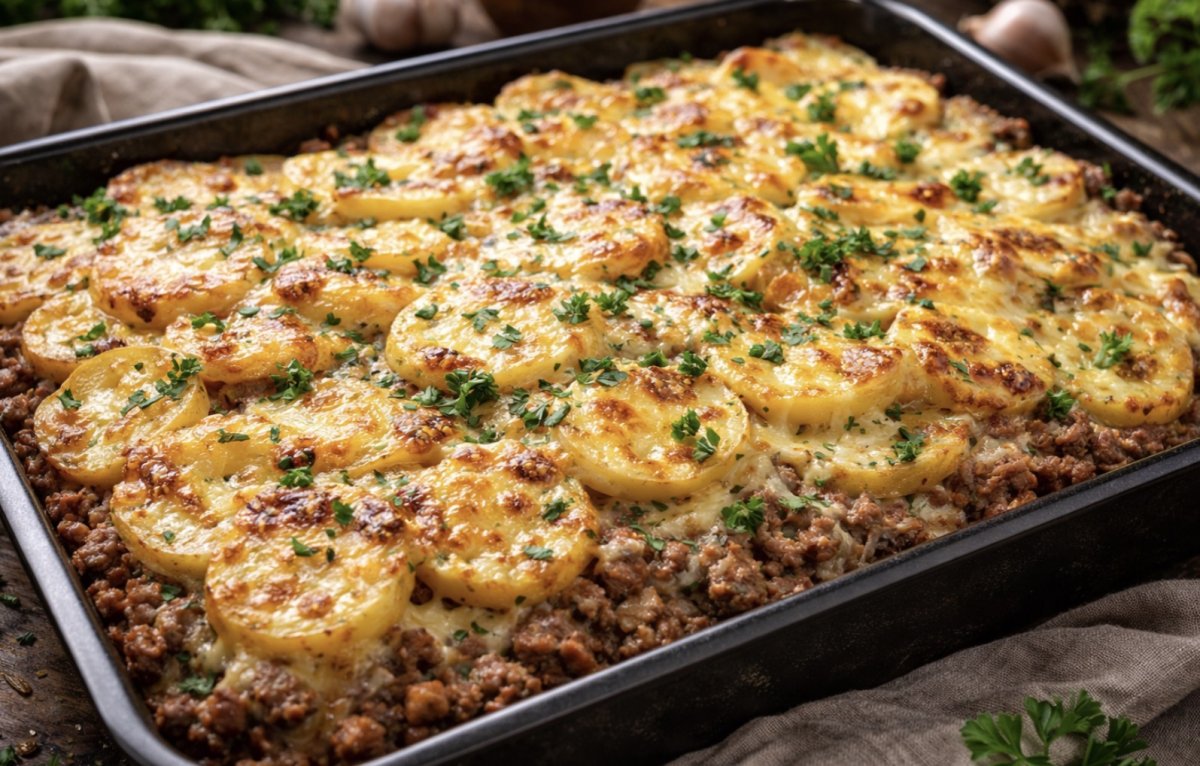 Калнина Наталья, автор популярного кулинарного канала, делится с нами рецептом сытного и простого блюда, которое легко приготовить без лишних хлопот. Это вариация мяса по-французски, но в более удобном формате — из фарша и картофеля.