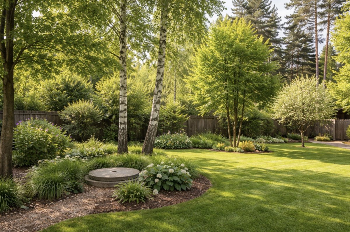 Чтобы всё работало правильно, важно соблюдать расстояние — примерно 5–10 метров от ямы. Лучше высаживать не одно дерево, а небольшую группу: так эффект будет заметнее. Но стоит учитывать, что результат не мгновенный — деревьям нужно время, чтобы набрать силу.