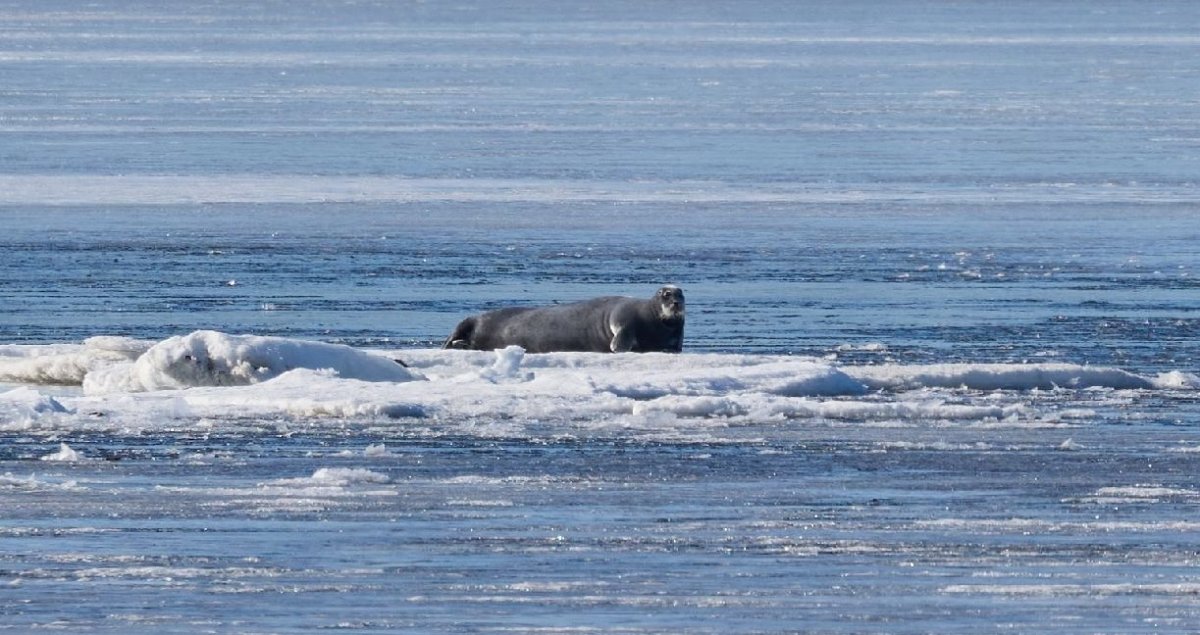 300 кг нежности на льдине: в Кандалакше фотограф отвлек морского зайца от весеннего релакса
