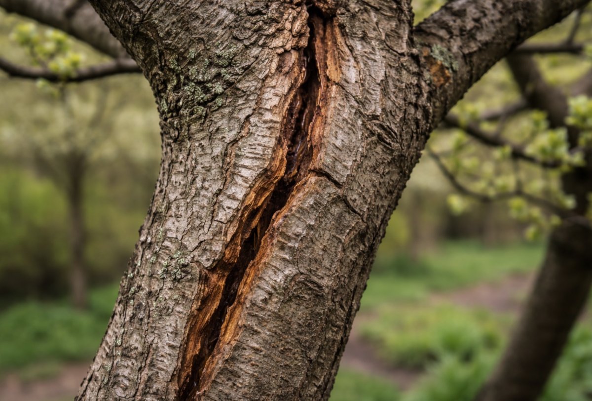 Растрескивание ветвей чаще связано не с инфекцией, а с уходом. Перепады температуры, неправильный полив или избыток удобрений делают ткани уязвимыми. Такие повреждения нужно сразу зачищать и обрабатывать, чтобы не допустить заражения.