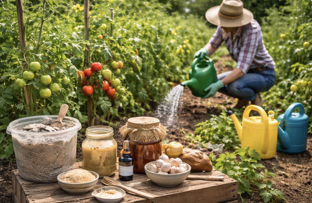 Первый помощник — древесная зола. Всего стакан на ведро воды, сутки настаивания — и готово. Такая подкормка укрепляет корни, улучшает вкус плодов и помогает растениям справляться с болезнями. Особенно хорошо реагируют томаты и перцы.