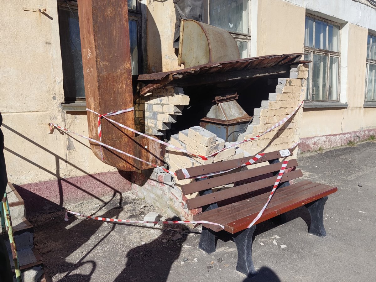 В Никеле после общественного резонанса и жалоб жителей на критическое состояние вентиляционной шахты дома на Бредова, 17 ответственные службы обещают приступить к решению проблемы. Ранее мы сообщали о том, что разрушается защитная конструкция для воздуховода, а труба вентиляции с остатками кирпичной стены держится на деревянной скамейке.
