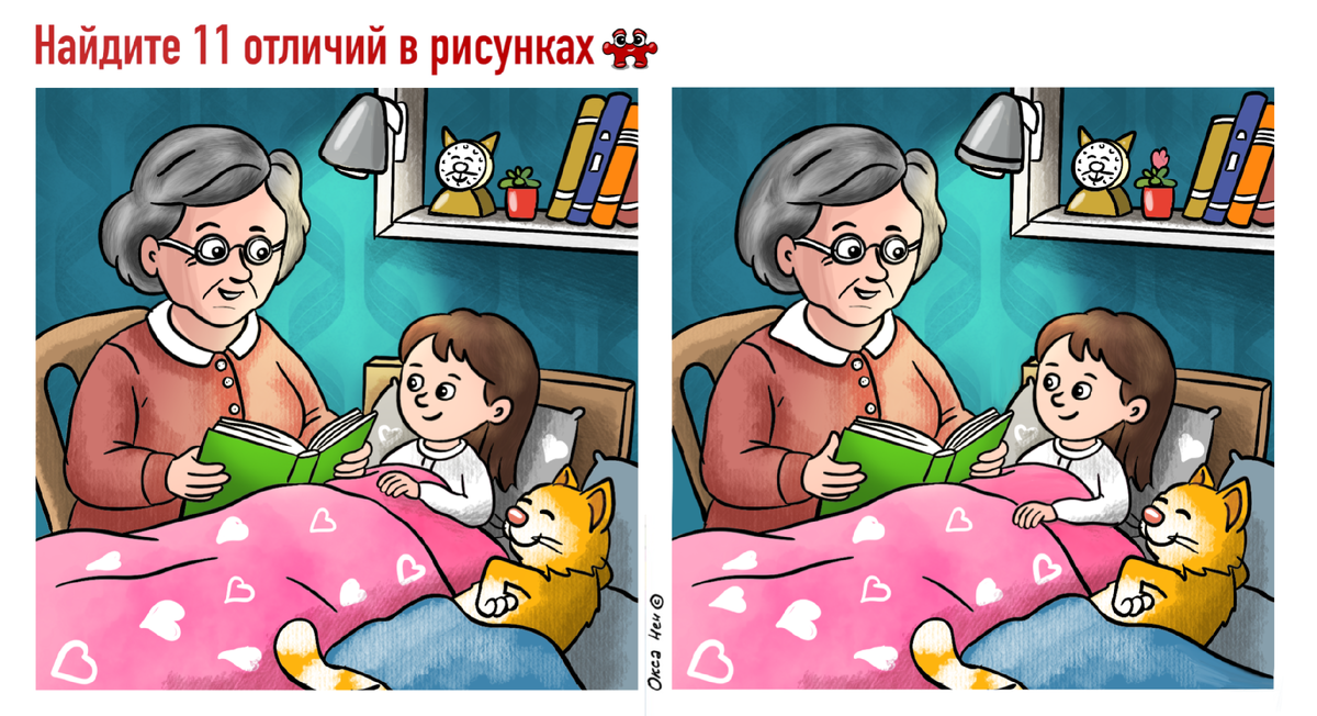 Здорово и то, что такие головоломки можно решать с детьми. Они активно подключаются к процессу и начинают быстро искать отличия. Для них это больше соревновательный процесс. Чтобы опередить маму и папу и именно самому первым найти все 11 отличий.