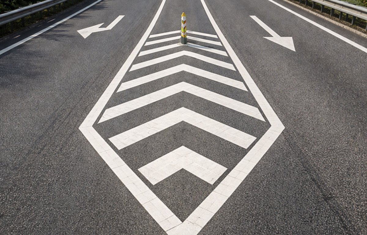 Речь идёт о тех самых «клинах» между расходящимися полосами, которые часто размечены диагональными линиями. Многие водители, не успев вовремя перестроиться, пытаются исправить ситуацию, просто проехав по такому участку.