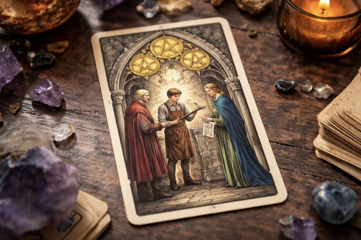 Этот вторник, 21 апреля проходит под энергией Тройки Пентаклей — карты мастерства, сотрудничества и роста через взаимодействие. Сегодняшний день не про спонтанность и не про одиночные усилия. Всё важное будет происходить через людей, договорённости и умение показать себя в деле.
