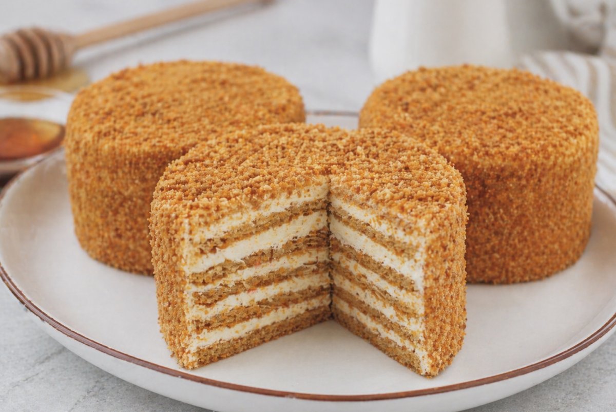 Опытный кондитер рассказывает, как приготовить домашние медовые пирожные, которые по вкусу не уступают классическому «Медовику», но готовятся в разы проще и быстрее. Без долгого замешивания и раскатки теста — всего один корж, нежный крем и отличный результат.