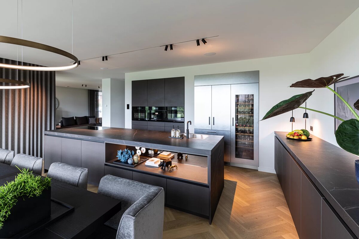 5.Сплошные матовые поверхности. Да ещё и тёмного цвета. Модно, но в реальной жизни непрактично. Такие фасады очень сильно пачкаются, на них постоянно будут видны жирные пятна. И тогда жизнь превратится в постоянную уборку.