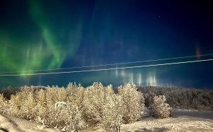 В Мурманске яркое северное сияние сопровождали световые столбы