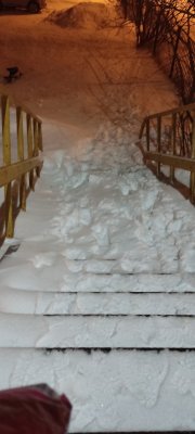 «Не лает, не кусает, а сбить не пускает»: в Мурманске авто возле дома мешает УК убрать с крыши огромную сосульку